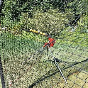 The secret lies in the frame design and netting. First, the frame’s side supports are made of steel tubing to give the frame durability and maximum swinging area for the batter. Second, the middle arch of the frame is made of a flexible fiberglass rod. This rod allows the cage to flex in the wind without bending or breaking. Third, the six power stakes are staked into the ground to give maximum frame support. Fourth, a rugged foam pad slides over each frame support to protect the frame from balls. Fifth, the extra strength catch net is made of 1” netting compared to 2” netting used on other cages.